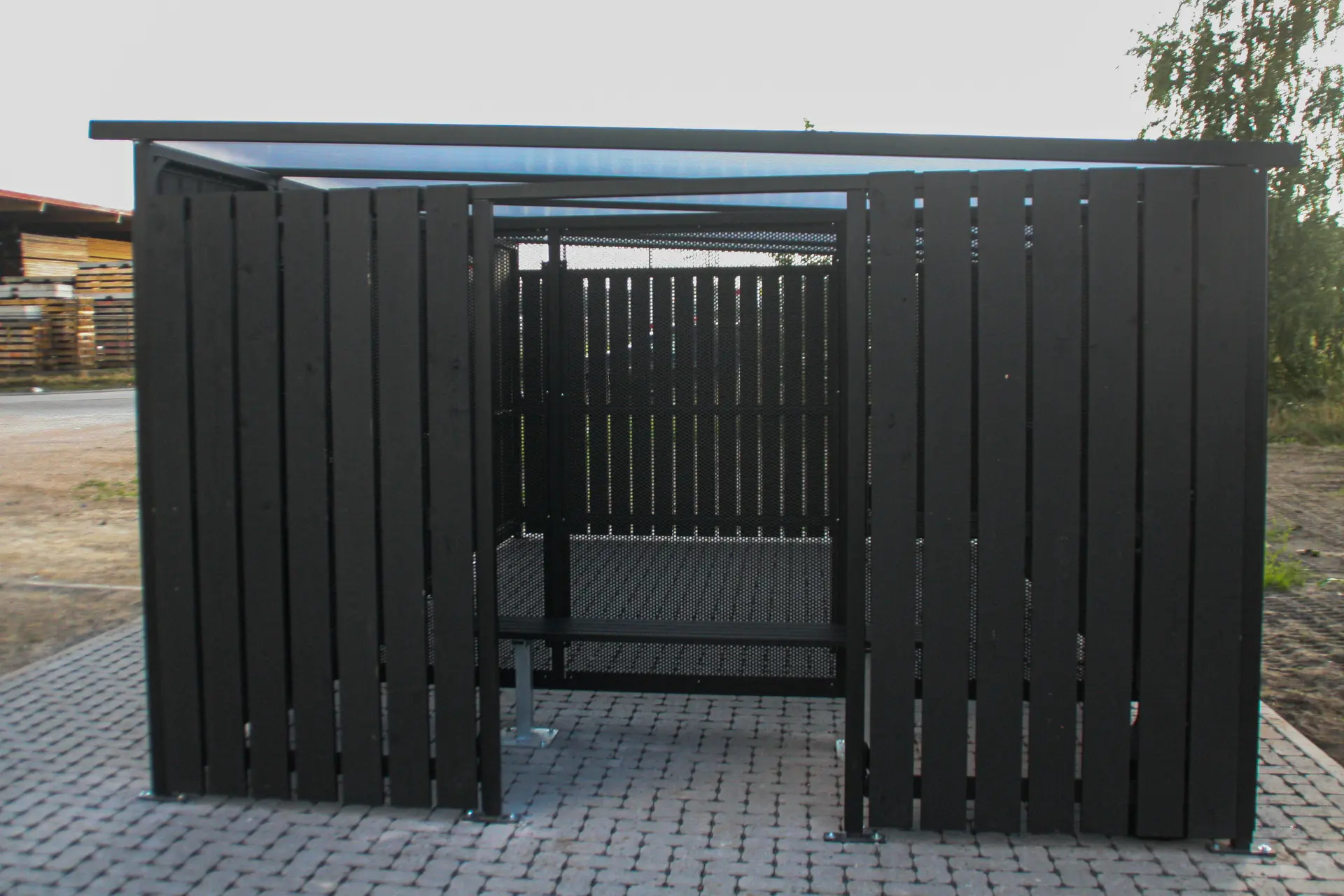 Our smoke patios are made of high-quality galvanised metal for maximum durability and corrosion protection. The roof and side panels are made of transparent or white polycarbonate: a durable, recyclable material.